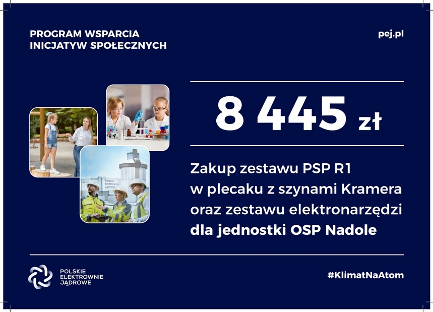 Kolejny zrealizowany projekt![]() Dzięki uzyskanemu wsparciu finansowemu ze Spółki Polskie Elektrownie Jądrowe sp. z o.o. w ramach Programu Wsparcia Inicjatyw Społecznych, do naszych strażaków trafił nowy zestaw PSP R1 w plecaku z szynami Kramera, oraz zestaw elektronarzędzi. Doposażenie jednostki w nowy sprzęt poprawi bezpieczeństwo na terenie gminy Gniewino i powiatu wejherowskiego, jak również poprawi bezpieczeństwo i skuteczność działań strażaków w czasie działań ratowniczych. Program Wsparcia Inicjatyw Społecznych (PWIS) jest programem realizowanym w ramach Społecznej Odpowiedzialności Biznesu Spółki Polskie Elektrownie Jądrowe. Jego celem jest wsparcie rozwoju obszarów objętych wpływem programu inwestycyjnego realizowanego przez Spółkę oraz budowanie i umacnianie partnerskich relacji z interesariuszami przedmiotowego programu, poprzez wsparcie wartościowych i istotnych dla tych interesariuszy inicjatyw. Dodano: 20:14, 10.02.2026